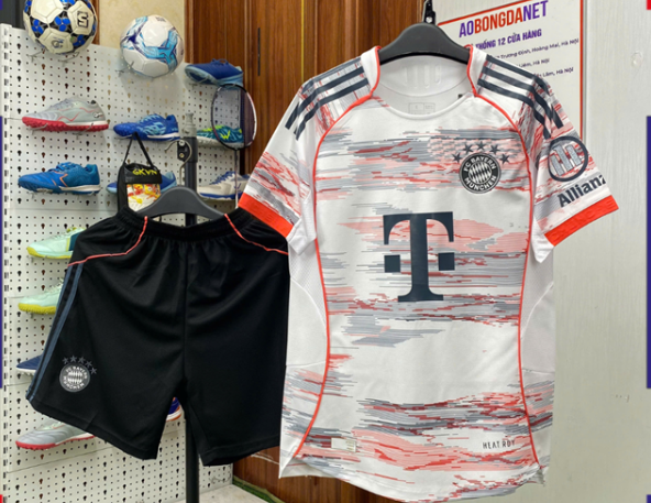 Phiên bản áo đấu Bayern mùa 2025–2026 gây ấn tượng với tông trắng chủ đạo cùng họa tiết lạ mắt, tạo cảm giác mới mẻ và rất dễ nổi bật trên sân. Mẫu áo không chỉ dành cho fan Bayern mà còn hợp với anh em thích phong cách thể thao gọn, “chất” và cá tính.